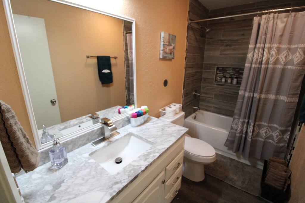 ☆☆ HIGHLIGHTS ☆☆ ✹3 bedrooms: 2 queen, 2 twins ✹One full bathroom and one half bathroom ✹Nice kitchen + modern appliances ✹Formal dining area ✹Comfy living area + flat-screen TV ✹High-speed Wifi ✹Work area with desk and chair ✹Laundry room w/ full-size washer + dryer ✹Huge privacy fenced backyard ✹Comfortable outdoor seating + BBQ ✹Convenient location in central Jenks. Close to lots of attractions ✹Free parking on site ✹Pets welcome Eager to Read More? ★★ BEDROOMS ★★ This home has four spacious private bedrooms, all complete with comfortable beds, high-end linens, and thoughtfully selected artwork to ensure a stylish place to come home to after exploring nearby attractions. ✹Primary Bedroom: Queen-sized bed, closet, half bath ✹Bedroom 2: queen-sized bed, closet ✹Bedroom 3: 2 twin-sized bed, closet ✔ Additional day bed in dining area ✔ Ceiling fans ★★ BATHROOMS ★★ This beautiful home has one full bathroom and one half bathroom, making it easy for busy travelers to get ready for (or unwind from) a busy day. The modern bathrooms are sparkling clean and feature plush towels. ✹Bathroom 1: Off of the hallway is the full bath with tub/shower ✹Bathroom 2: in-suite half bath for one of the bedrooms ✔ Essential toiletries provided (including shampoo + body wash) ✔ Hair dryer ✔ Fresh towels ✔ Laundry room ★★ KITCHEN & DINING ★★ The kitchen features a lovely tile backsplash, stainless steel appliances, expansive countertops, and custom cabinets stocked with kitchen essentials. This modern kitchen is the perfect place to make breakfast and coffee before heading downtown, or for reheating leftovers. ✔ Fully-stocked kitchen w/ modern appliances (including a dishwasher) ✔ Complimentary coffee bar ✔ Basic cookware + dinnerware ✔ Formal dining area with seating for six ★★ LIVING ROOM ★★ The spacious living room provides comfortable seating for everybody in your group, and will easily become your family's favorite hangout spot. Two plush couches create a comfortable and convenient lounge area. This is a great place to enjoy your favorite TV shows, nap, or just enjoy some quiet hours with the whole family. ✔ Comfy seating ✔ Smart TV ✔ Ceiling fan ★★ OUTDOOR SPACE ★★ If you like spending time outside, Claremore has great walking trails, and playgrounds to explore. But if you want to enjoy the outdoors without leaving the house, your whole group will enjoy the private patio and huge backyard. The private yard is fully fenced, creating a safe place for kids and pets to play during warmer months. Fire up the grill and enjoy a cookout. ✔ Fenced yard + comfortable seating ✔ BBQ grill ✔ Outdoor dining space ★★ ACTIVITIES/ATTRACTIONS ★★ In Claremore, you'll find plenty of fun things to do, and our home is the perfect place to start your exploration. Take a look at some exciting options you can enjoy: ✔ The JM Davis Gun Museum is the largest private collection of guns in the world. This is a must visit for the whole family. ✔ The Will Rogers Memorial is dedicated to Claremore's (and maybe Oklahoma's) most famous former resident. Learn about his history and see many cowboy themed exhibits. ✔ Claremore Lake is a nice and serene place to visit and have a place to play and relax. All these activities and more are within your reach when you book with us! ★☆ Book Today & Let Us Take Care Of You In Claremore! ☆★