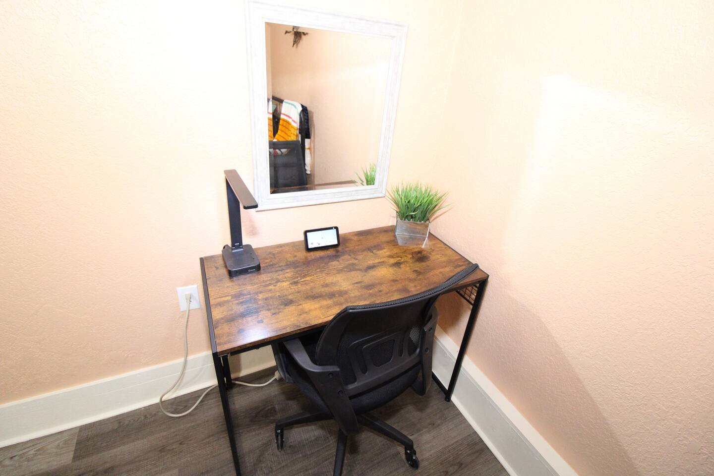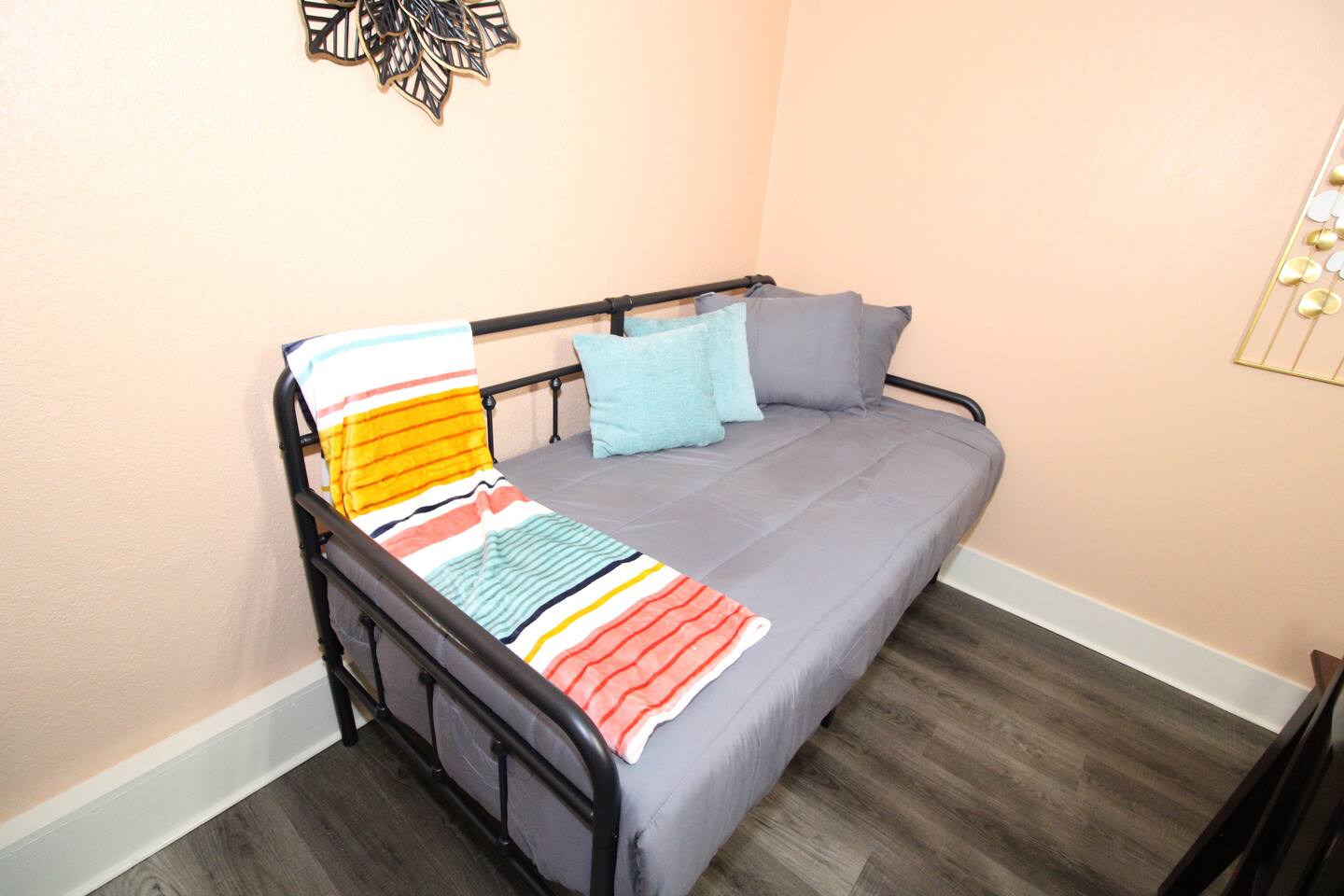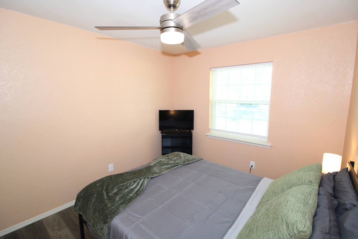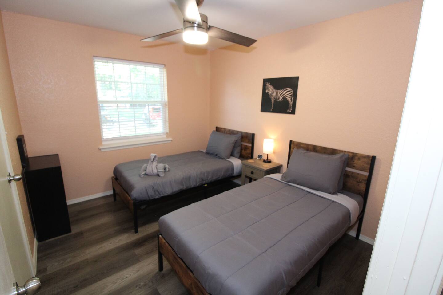 ☆☆ HIGHLIGHTS ☆☆ ✹3 bedrooms: 2 queen, 2 twins ✹One full bathroom and one half bathroom ✹Nice kitchen + modern appliances ✹Formal dining area ✹Comfy living area + flat-screen TV ✹High-speed Wifi ✹Work area with desk and chair ✹Laundry room w/ full-size washer + dryer ✹Huge privacy fenced backyard ✹Comfortable outdoor seating + BBQ ✹Convenient location in central Jenks. Close to lots of attractions ✹Free parking on site ✹Pets welcome Eager to Read More? ★★ BEDROOMS ★★ This home has four spacious private bedrooms, all complete with comfortable beds, high-end linens, and thoughtfully selected artwork to ensure a stylish place to come home to after exploring nearby attractions. ✹Primary Bedroom: Queen-sized bed, closet, half bath ✹Bedroom 2: queen-sized bed, closet ✹Bedroom 3: 2 twin-sized bed, closet ✔ Additional day bed in dining area ✔ Ceiling fans ★★ BATHROOMS ★★ This beautiful home has one full bathroom and one half bathroom, making it easy for busy travelers to get ready for (or unwind from) a busy day. The modern bathrooms are sparkling clean and feature plush towels. ✹Bathroom 1: Off of the hallway is the full bath with tub/shower ✹Bathroom 2: in-suite half bath for one of the bedrooms ✔ Essential toiletries provided (including shampoo + body wash) ✔ Hair dryer ✔ Fresh towels ✔ Laundry room ★★ KITCHEN & DINING ★★ The kitchen features a lovely tile backsplash, stainless steel appliances, expansive countertops, and custom cabinets stocked with kitchen essentials. This modern kitchen is the perfect place to make breakfast and coffee before heading downtown, or for reheating leftovers. ✔ Fully-stocked kitchen w/ modern appliances (including a dishwasher) ✔ Complimentary coffee bar ✔ Basic cookware + dinnerware ✔ Formal dining area with seating for six ★★ LIVING ROOM ★★ The spacious living room provides comfortable seating for everybody in your group, and will easily become your family's favorite hangout spot. Two plush couches create a comfortable and convenient lounge area. This is a great place to enjoy your favorite TV shows, nap, or just enjoy some quiet hours with the whole family. ✔ Comfy seating ✔ Smart TV ✔ Ceiling fan ★★ OUTDOOR SPACE ★★ If you like spending time outside, Claremore has great walking trails, and playgrounds to explore. But if you want to enjoy the outdoors without leaving the house, your whole group will enjoy the private patio and huge backyard. The private yard is fully fenced, creating a safe place for kids and pets to play during warmer months. Fire up the grill and enjoy a cookout. ✔ Fenced yard + comfortable seating ✔ BBQ grill ✔ Outdoor dining space ★★ ACTIVITIES/ATTRACTIONS ★★ In Claremore, you'll find plenty of fun things to do, and our home is the perfect place to start your exploration. Take a look at some exciting options you can enjoy: ✔ The JM Davis Gun Museum is the largest private collection of guns in the world. This is a must visit for the whole family. ✔ The Will Rogers Memorial is dedicated to Claremore's (and maybe Oklahoma's) most famous former resident. Learn about his history and see many cowboy themed exhibits. ✔ Claremore Lake is a nice and serene place to visit and have a place to play and relax. All these activities and more are within your reach when you book with us! ★☆ Book Today & Let Us Take Care Of You In Claremore! ☆★