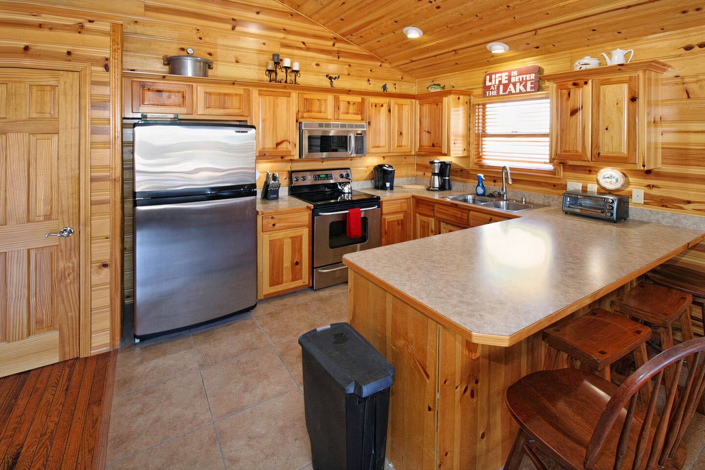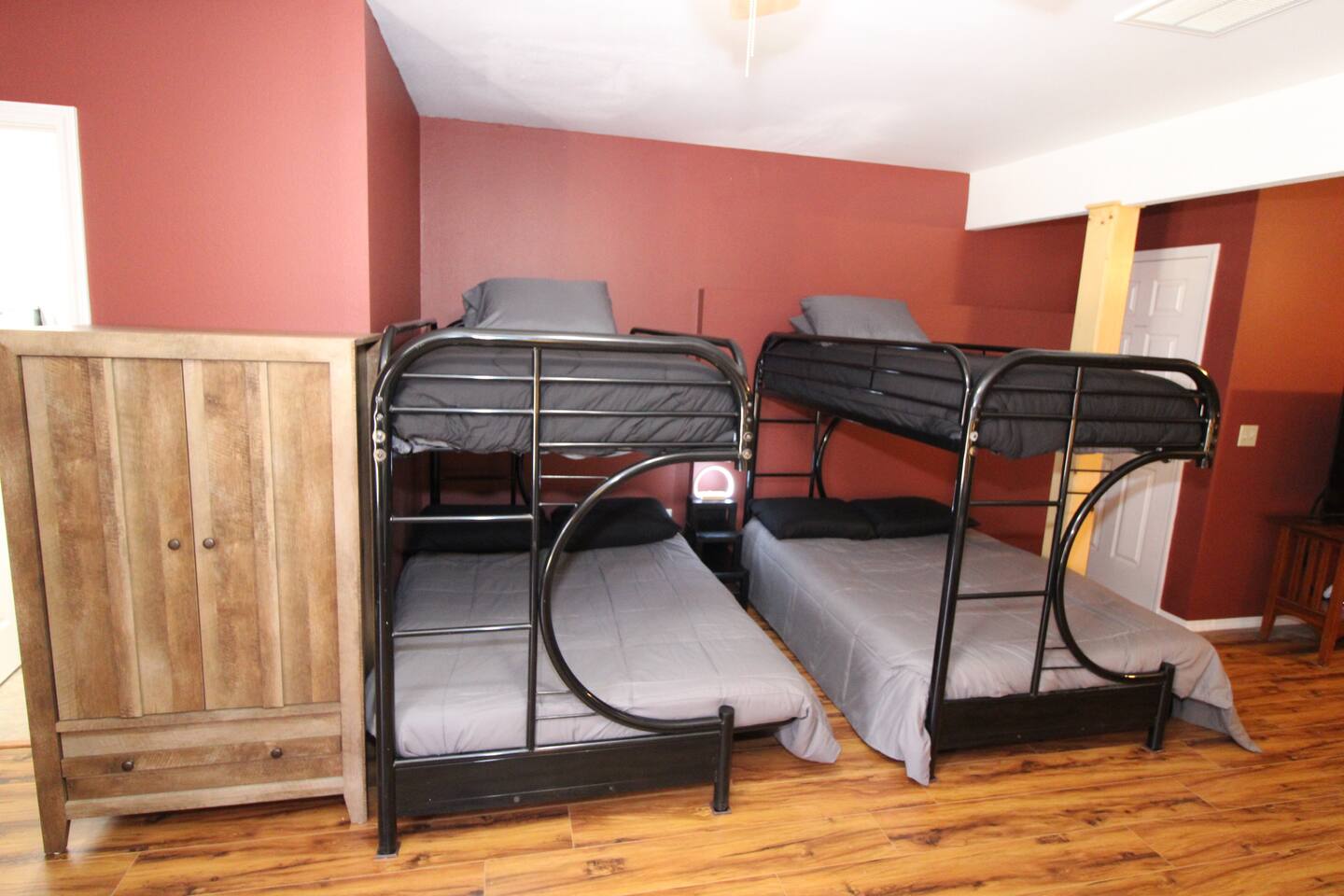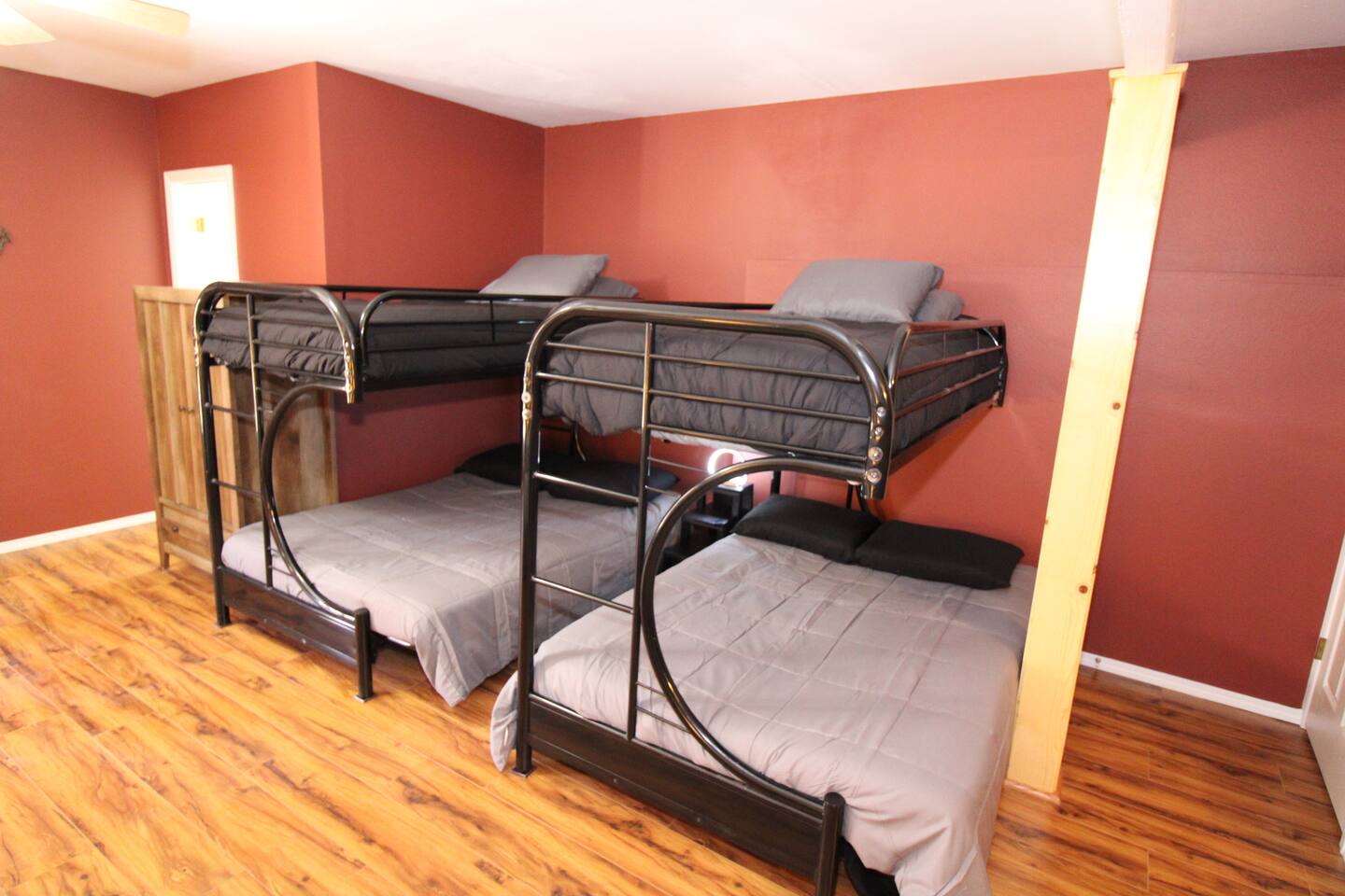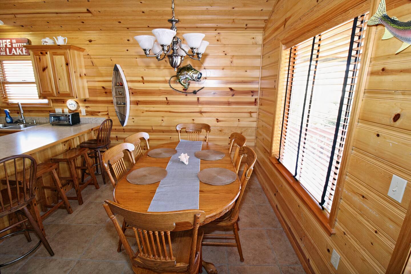 ☆☆ HIGHLIGHTS ☆☆ ✹ 3 comfortable bedrooms + additional sleeping space ✹ 2 full bathrooms + 1 half bath; essential toiletries provided ✹ Full kitchen w/ stainless steel appliances ✹ Complimentary coffee bar ✹ Spacious living room w/ flat-screen smart TV + Xbox ✹ Electric fireplace ✹ High-speed WiFi + dedicated workspaces in two bedrooms ✹ Private covered hot tub ✹ Large deck w/ lake views ✹ Serene outdoor space w/ secluded fire pit surrounded by woods ✹ Game room w/ ping pong + foosball ✹ 2 kayaks for guest use ✹ Ample parking for multiple vehicles/boat trailer ✹ Access to a private dock across the street ✹ Easy access to the lake, trails, groceries + local restaurants ✹ Furry friends welcome Eager to Read More? Here Are A Few Kind Words From Our Previous Guests: “Loved the place and was exactly as described. Wonderfully quiet with some really good fishing in the cove. Would definitely recommend this place to anyone! Ryan was super responsive to anything we asked as well!” - Daniel “Great location. Place was very clean. Highly recommend staying here!” - Anthony “probably my favorite spot I've ever stayed. peaceful, beautiful property tucked away and secluded. absolutely loved it and where I will stay every time I visit family from now on.” Rodney ★★ BEDROOMS ★★ After a long day on the lake, three spacious bedrooms with comfortable beds await, including a set of bunk beds perfect for large families with kids. If you need additional sleeping space, there is a queen air mattress and a large sectional sofa that can accommodate more guests. ✹Primary Bedroom: King-sized bed, ensuite bathroom, dedicated workspace w/ printer, flat-screen smart TV ✹Bedroom 2: Queen-sized bed, ensuite bathroom, flat-screen smart TV ✹Bedroom 3: Queen-sized bed, 2 twin-over-full bunk beds, 2 couches, dedicated workspace, direct access to the outdoor space ★★ BATHROOMS ★★ This spacious home boasts two full bathrooms (one connected to the primary bedroom and one shared by the second bedroom and main living space), plus an additional half bath. All three bathrooms are sparkling clean, offering a relaxing space for freshening up. ✹Bathroom 1: Private ensuite bathroom to the primary bedroom with a walk-in shower, dual sinks, and a walk-in closet ✹Bathroom 2: Ensuite to the second bedroom with a shower/tub combo, dual sinks, and a walk-in closet. Also accessible from the hallway. ✹Bathroom 3: Half bath ✔ Complimentary toiletries provided (including shampoo, conditioner, and body wash) ✔ Hair dryer ✔ Fresh towels ✔ Laundry room w/ plenty of counter space in the hallway ★★ KITCHEN & DINING ★★ Cook delicious meals the whole family will love in the large, open kitchen. You’ll have no problem getting into chef mode thanks to the spacious countertops, modern appliances, and all the appliances at your disposal. ✔ Fully stocked kitchen w/ modern appliances ✔ Complimentary coffee bar w/ Keurig machine & drip coffee maker ✔ Basic cookware & dinnerware ✔ Oversized dining table w/ seating for 6 + island seating for 4 ★★ LIVING ROOM ★★ The cozy yet spacious living room sets the stage for fun family movie nights with two sofas, a large chair, a smart TV, and an electric fireplace to keep you warm on chilly evenings. If you can’t agree on what to watch, head down to the lower level and you’ll find an additional living room with an expansive sectional sofa, a large flat-screen smart TV, and an Xbox Series S. ✔ 2 large living rooms w/ flat-screen smart TVs ✔ Electric fireplace ✔ Xbox Series S ★★ GAME ROOM ★★ Seeking some more entertainment options? You won’t have to go far! The garage has some fun games to keep the fun going. Challenge your group to a ping pong or foosball tournament, or enjoy a classic card game around the table. ✔ Garage space w/ fun games; ping pong + foosball ✔ 2 kayaks ✔ cahrcoal grill ✔ Work out area with weights, bench + pullup bar ★★ OUTDOOR SPACE ★★ The outdoor space is where this property really shines. Step outside and breathe in the fresh air from the large deck as you take in the stunning lake views, or enjoy some quality time with loved ones around the firepit after the sun goes down. Head across the street to the private dock to go for a paddle with the kayaks provided, or simply enjoy the views. ✔ Large patio w/ lake views, fire table, hammock + more ✔ Charcoal grill + outdoor dining area ✔ Private hot tub ✔ Secluded fire pit ✔ Large yard surrounded by nature - dogs welcome! ✔ Easy access to the lake + private dock for fishing or boating ✔ 2 kayaks available for free use ✔ Boat + jet ski rentals available ★★ ACTIVITIES/ATTRACTIONS ★★ This home is the perfect place for nature lovers, as you’ll be surrounded by it on all sides. A cove to Grand Lake sits just across the street, the home is encircled by forest, and there are several trails a short hop away. No matter how you prefer to reconnect with nature, here are a few of the best activities and attractions in the nearby area: ✔ Grand Lake O' the Cherokees: Embark on water adventures at Grand Lake, offering boating, fishing, and lakeside relaxation, ensuring a refreshing and scenic escape for vacationers. ✔ Pensacola Dam and Spillway: Explore the impressive Pensacola Dam, a scenic marvel on Grand Lake, providing vacationers with stunning views and the opportunity to stroll across the spillway, creating unforgettable memories. ✔ Little Blue State Park: Immerse yourself in nature at Little Blue State Park, a serene destination for hiking, picnicking, and wildlife observation, making it an ideal retreat for those seeking outdoor tranquility. ✔ Vinita Route 66 Festival: Plan your stay around the Vinita Route 66 Festival, a local event celebrating the iconic highway with food, music, and festivities, providing visitors with a taste of the community spirit. ✔ The Clanton's Cafe: In
