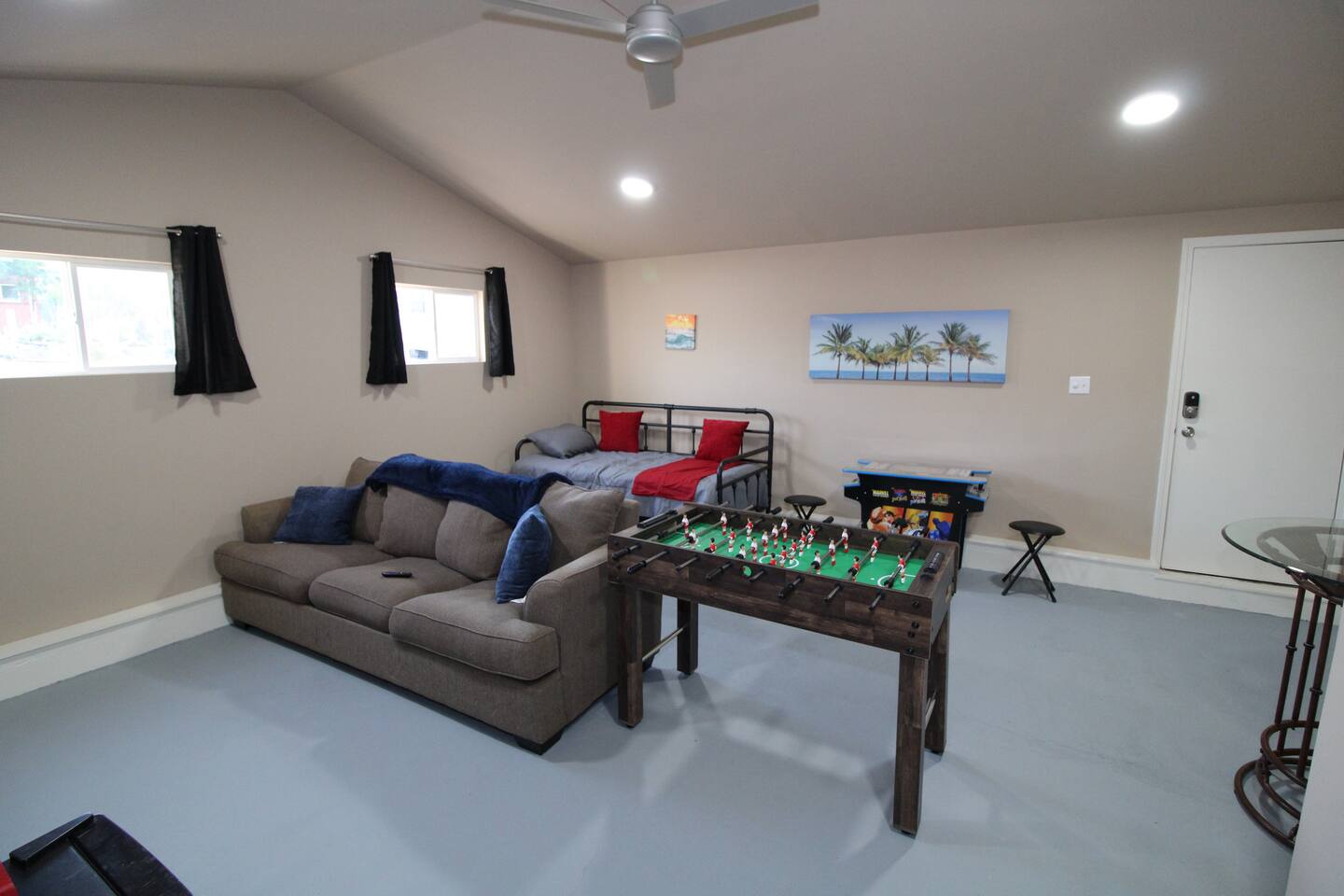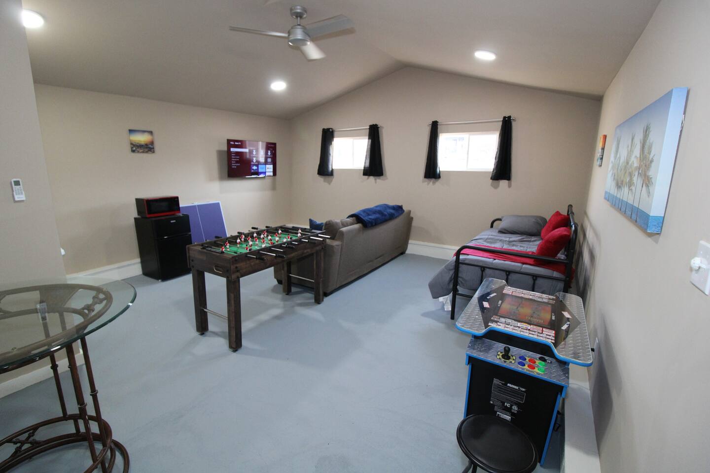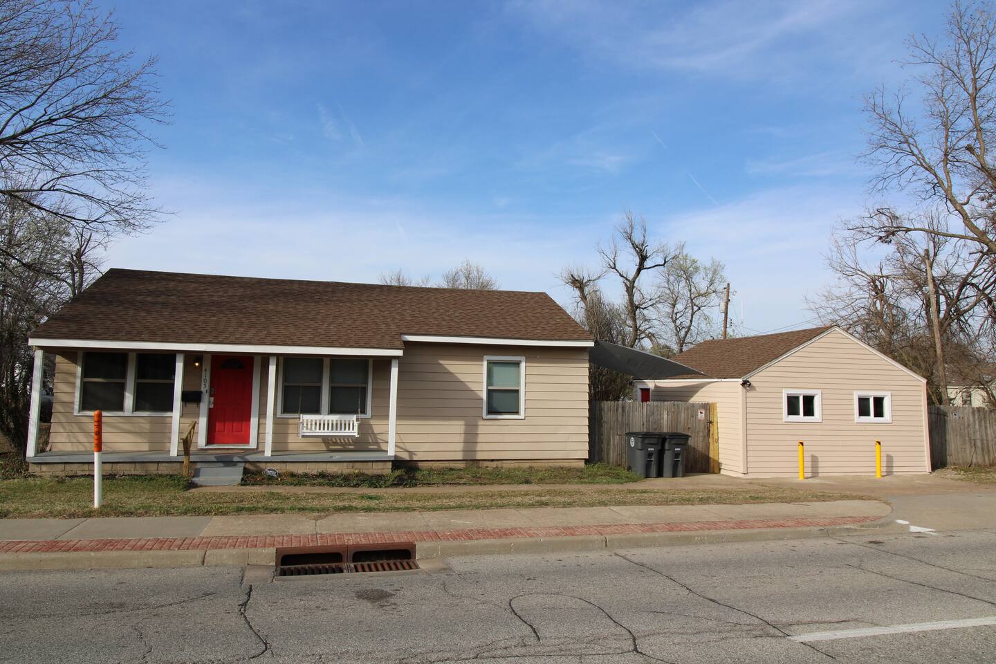 KEY FEATURES: ☀ No pet fees! ☀ Guests have no checkout chores! ☀ 3 large bedrooms; all with Queen beds ☀ Game room with additional sleeping areas ☀ 1 bathroom with tiled shower ☀ Fully equipped kitchen with family dining area ☀ Sun-filled living room with flat-screen TV and video games ☀ Amazon Alexa (Echo) and fast WiFi ☀ Private back patio with picnic table and charcoal grill ☀ Full-size washer and dryer ☀ Across the street from Expo Square Here Are A Few Kind Words From Our Past Guests: “My father and I stayed here for the 2022 Chili Bowl. This was the perfect location. You can even walk over to the location. The parking situation is a little tight but manageable. Minutes away from everything. The house was very clean. It had all we needed. I would recommend this to anyone who is planning for next year’s race.” - Brian “Really great place Definitely will be staying there again” - Isaac “Very cute home with convenient location and amenities. The host has clear instructions and makes check-in and out very simple. I would book again.” - Nicole ☆☆ BEDROOMS ☆☆ This home is perfect for a small family, groups of friends traveling together, business travelers, and even solo adventurers. The three bedrooms offer comfortable Queen-size beds, high-end linen, and spacious closets and dressers to keep your belongings organized. All three bedrooms have hardwood floors, windows that allow in natural light, and subtle decor to make you feel at home. ☆☆ BATHROOM ☆☆ There is one full bathroom, complete with intricate tilework, a vanity area with storage underneath, and modern light fixtures. The tub/shower combo offers rain shower features and is the perfect way to unwind after a busy day of shopping. ☆☆ KITCHEN ☆☆ Many cool restaurants, breweries, cafes, and dessert shops are close by, offering you different meal options to try. But on nights you simply want to stay in, the fully furnished kitchen provides all the tools you need to cook and eat as you do at home. Modern black appliances pop against the white cabinetry, and the sleek countertops provide enough room for meal prep. The kitchen has a full-size refrigerator, stove, microwave, double sink, and dishwasher. Early birds can brew coffee in the coffee maker or make tea from the available selection if you prefer. Night owls can reheat leftovers in the microwave and enjoy them while watching a late-night movie. Eat meals together at the handcrafted wooden table behind the kitchen, or set up your laptop, connect to the WiFi, and get your outstanding work tasks done. ☆☆ LIVING ROOM ☆☆ The main living room features exposed wood beams, hardwood floors, and large windows that show off the scenery beyond the property. Get comfortable in one of the two plush sofas, kick back and watch your favorite shows on the flat-screen TV. The open concept living room makes it easy to move about to the dining area, the kitchen, and also to the bedrooms. Couch can serve as an added sleeping space and there is also a queen air mattress. ☆☆ GAME ROOM ☆☆ The game room is right next to the main house. It is fully remodeled and has a beautiful vaulted ceiling. There is a smart TV, couch, ping pong, foosball, video game table, fridge, microwave, pub table, day bed, and more. There is a closet for hanging clothes. ☆☆ OUTSIDE SPACE ☆☆ A single door leads from the kitchen out to the sunny back patio with simple outdoor lounge furniture. Enjoy coffee or a good book here in the mornings at the picnic table. A walkway weaves from the patio through the big backyard, a green and lush place to run, play and connect with nature. The yard is completely fenced in. ★☆ Book Today & Let Us Take Care Of You In Tulsa! ☆★