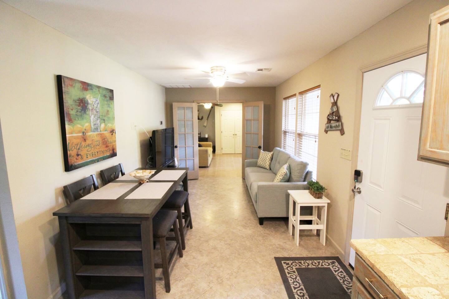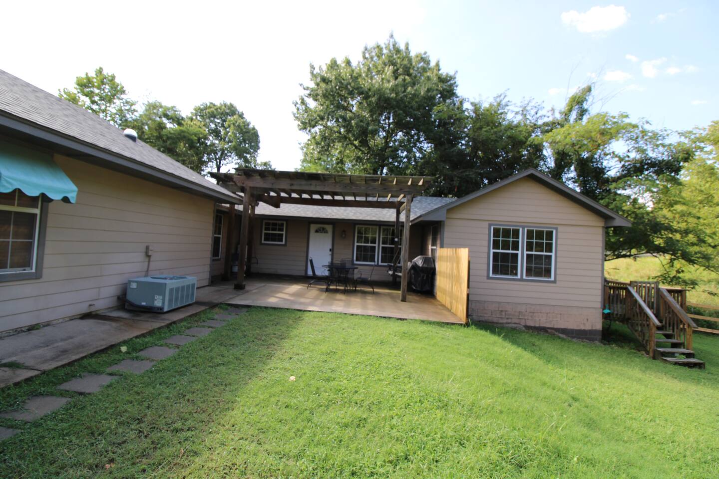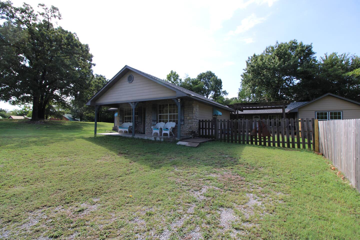 THIS HOME HAS 2 UNITS THAT CAN BE RENTED OUT TOGETHER IF BOTH AVAILABLE. THE LINK TO THE OTHER UNIT IS: http://airbnb.com/h/grandlakecozycove ☆☆ HIGHLIGHTS ☆☆ ✹ 3 comfortable bedrooms + additional sleeping space ✹ 1 full bathrooms; essential toiletries provided ✹ Full kitchen w/ stainless steel appliances ✹ Living room w/ flat-screen smart TV ✹ High-speed WiFi ✹ Ample parking for multiple vehicles/boat trailer ✹ Access to a the cove in the neighborhood ✹ Easy access to the lake, trails, groceries + local restaurants ✹ Furry friends welcome Eager to Read More? ★★ BEDROOMS ★★ After a long day on the lake, three bedrooms with comfortable beds await. If you need additional sleeping space, there is a queen air mattress and a sleeping space on sofa that can accommodate more guests. ✹Primary Bedroom: Queen-sized bed ✹Bedroom 2: Queen-sized bed ✹Bedroom 3: Twin bed with bunk beds ★★ BATHROOMS ★★ This spacious home has a full bathroom which is sparkling clean, offering a relaxing space for freshening up. ✹Bathroom 1: Full bathroom off the hallway ✔ Complimentary toiletries provided (including shampoo, conditioner, and body wash) ✔ Hair dryer ✔ Fresh towels ✔ Laundry room ★★ KITCHEN & DINING ★★ Cook delicious meals the whole family will love in the kitchen. You’ll have no problem getting into chef mode thanks to the appliances at your disposal. ✔ Fully stocked kitchen w/ appliances ✔Coffee maker ✔ Basic cookware & dinnerware ✔ Dining table w/ seating for 4 ★★ LIVING ROOM ★★ The cozy living room sets the stage for fun family movie nights with sofa and a smart TV, ✔ living room w/ flat-screen smart TV ★★ OUTDOOR SPACE ★★ The outdoor space is where this property really shines. Step outside and breathe in the fresh air from the patio. Lots of space to play. Walk or drive down to the cove to see the water. ✔ Patio with chairs ✔ Gas grill + outdoor dining area ✔ Large yard surrounded by nature - dogs welcome! ✔ Easy access to the lake ✔ Boat + jet ski rentals available ★★ ACTIVITIES/ATTRACTIONS ★★ This home is the perfect place for nature lovers, as you’ll be surrounded by it on all sides. A cove to Grand Lake sits in the neighborhood, the home is in a wooded area, and there are several trails a short hop away. No matter how you prefer to reconnect with nature, here are a few of the best activities and attractions in the nearby area: ✔ Grand Lake O' the Cherokees: Embark on water adventures at Grand Lake, offering boating, fishing, and lakeside relaxation, ensuring a refreshing and scenic escape for vacationers. ✔ Pensacola Dam and Spillway: Explore the impressive Pensacola Dam, a scenic marvel on Grand Lake, providing vacationers with stunning views and the opportunity to stroll across the spillway, creating unforgettable memories. ✔ Little Blue State Park: Immerse yourself in nature at Little Blue State Park, a serene destination for hiking, picnicking, and wildlife observation, making it an ideal retreat for those seeking outdoor tranquility. ✔ Vinita Route 66 Festival: Plan your stay around the Vinita Route 66 Festival, a local event celebrating the iconic highway with food, music, and festivities, providing visitors with a taste of the community spirit. ✔ The Clanton's Cafe: Indulge in a classic Route 66 dining experience at The Clanton's Cafe, a historic eatery known for its delicious chicken fried steak and welcoming atmosphere. All these activities and more are within your reach when you book with us! ★☆ Book Today & Let Us Take Care Of You at Grand Lake ☆★