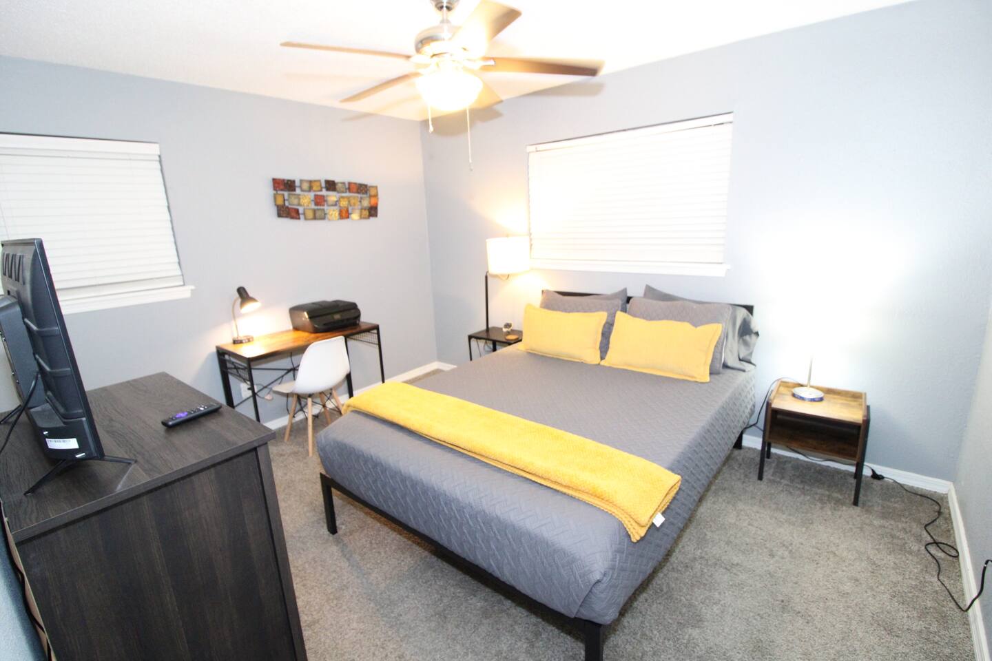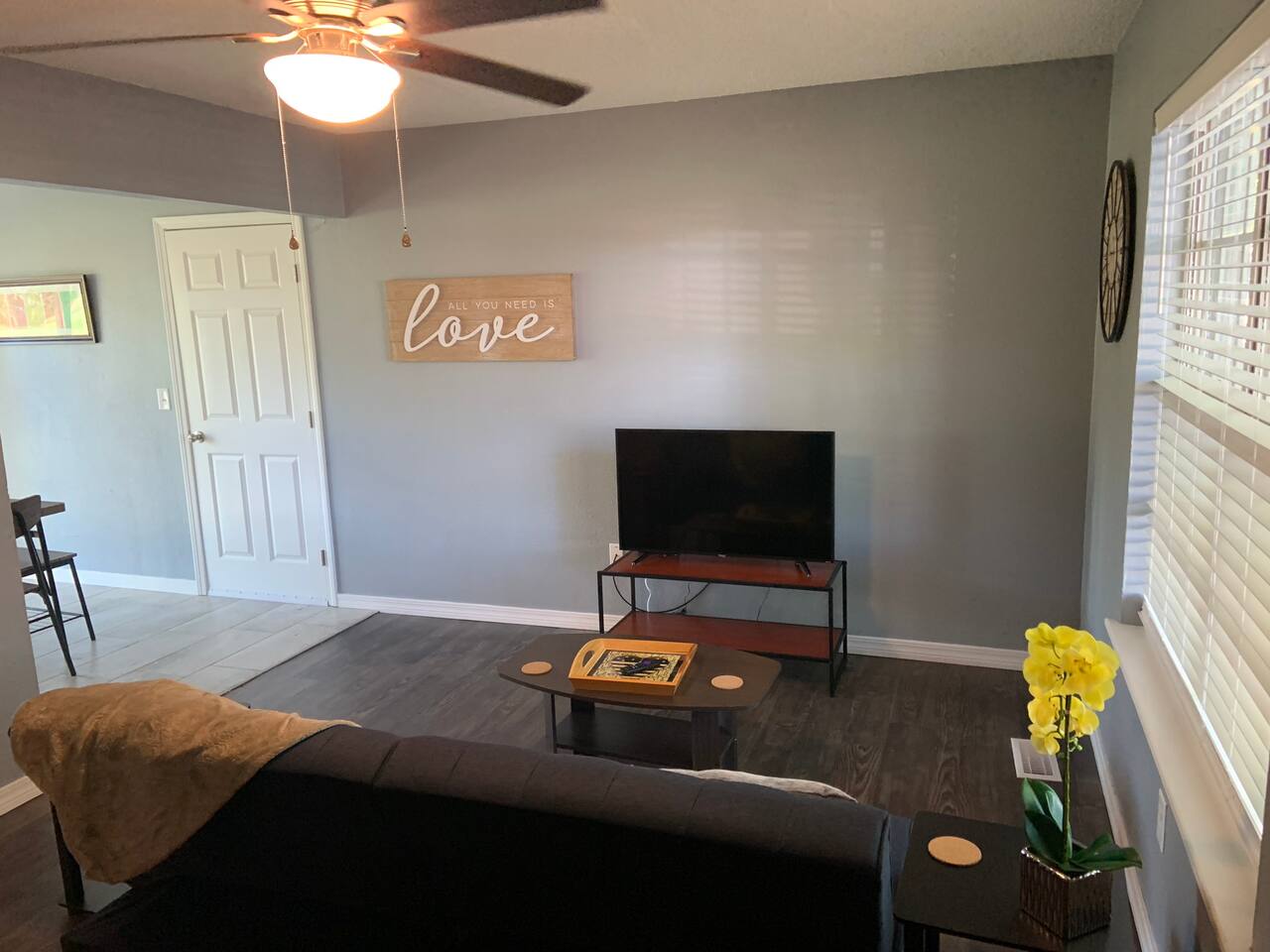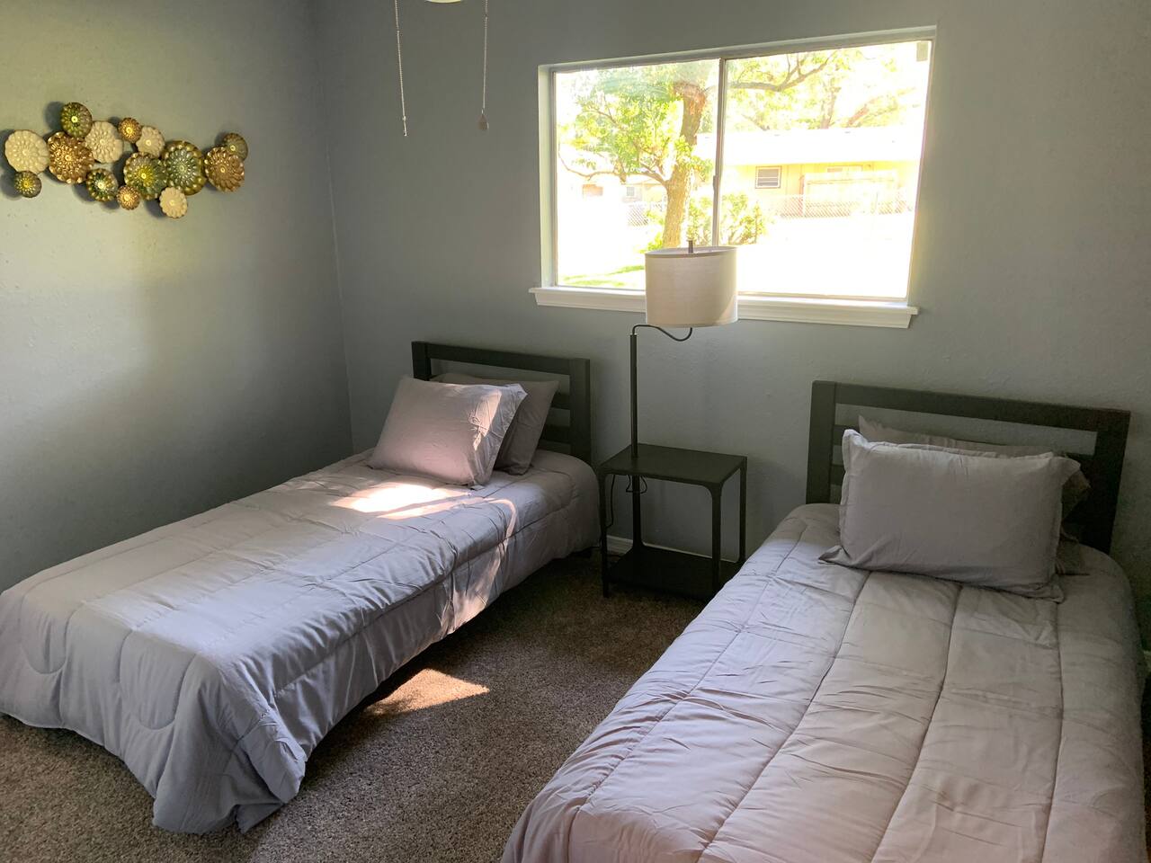 No pet fees! Guests have no checkout chores! ***All surfaces especially highly touched areas, are sanitized by professional cleaners after every stay. It is very important to protect your health during this time*** This house just feels like home. It has been completely remodeled on the inside. Walk in and just feel comfortable. Has 3 bedrooms with 4 beds and a couch in the living room. Very large fenced backyard with trees for pets and kids to play in.