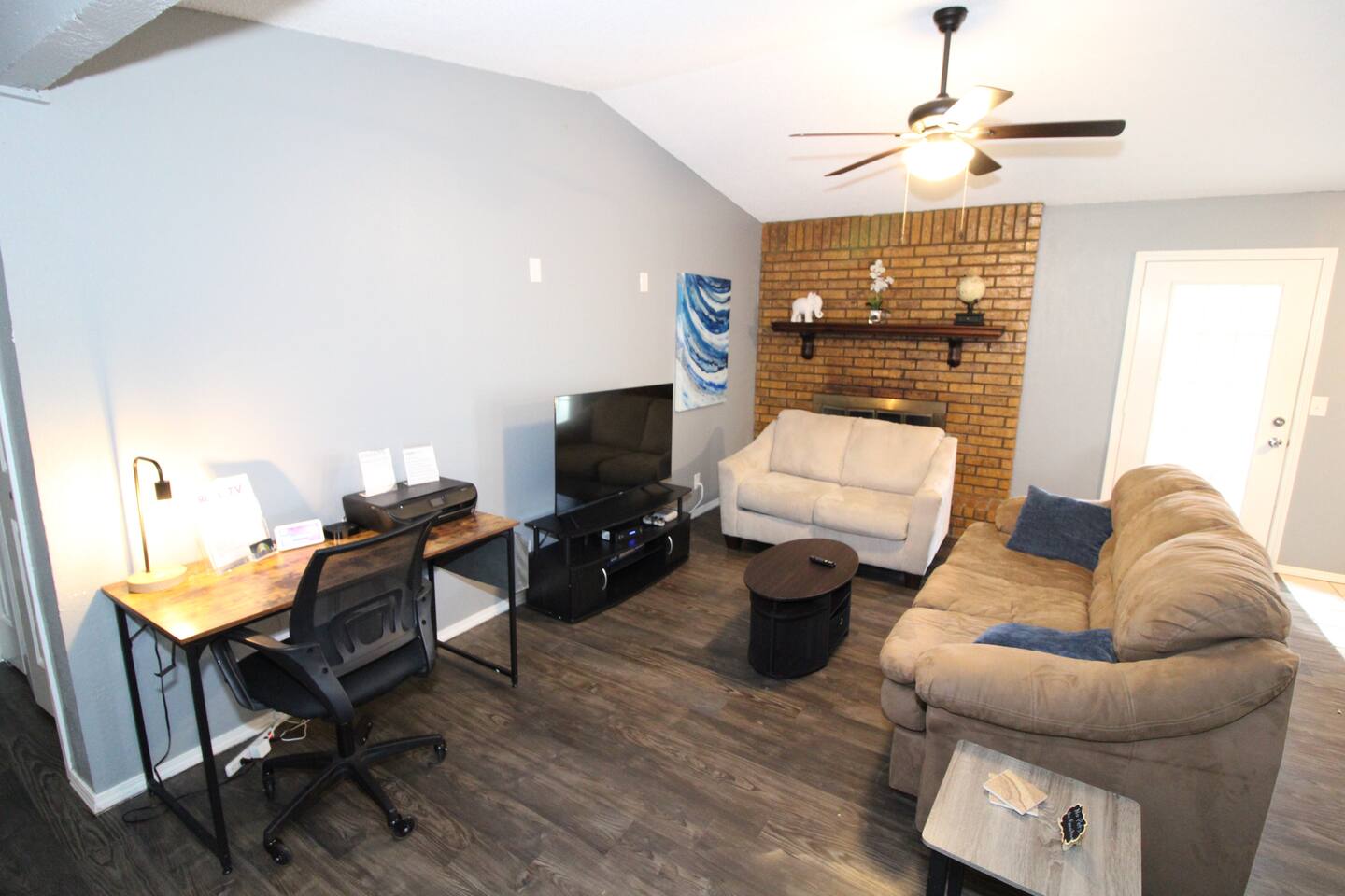 Broken Arrow has continually been included on lists of safest cities in the USA. ☆☆ HIGHLIGHTS ☆☆ ✹3 bedrooms: 1 queen, 1 queen, 2 twins ✹Two full bathrooms ✹Spacious kitchen + modern appliances ✹Formal dining area ✹Open-concept living area w/ designer furniture + flat-screen TV ✹High-speed Wifi ✹Desk + ergonomic chair for convenient remote work ✹Laundry room w/ full-size washer + dryer ✹Huge backyard ✹Comfortable outdoor seating,+ BBQ ✹Convenient location minutes from shopping and dining ✹Free parking on site with 2 car garage ✹Pets welcome Eager to Read More? Here Are A Few Kind Words From Our Previous Guests: "I feel this Airbnb aka 'Comfy Airbnb' can afford more bragging rights, like the peaceful backyard with lots of wild bird life and soft patio sunsets where an outdoor Webber greeted us! I loved having my coffee out on the back patio in the morning and Chardonnay in the evening while being hugged by the pretty garden twinkle lights. Though I describe ambiance, safety is my priority and this is a safe, well established neighborhood where kids can play outside or ride their bikes. Feet away is a very nice grass park with play equipment and a softball field. Starbucks is one block away and a fresh fish market/restaurant is less than 2 miles away. Super Walmart is only half a mile away. I also extended my stay another week. Enjoy‼️❤️" -Vicki "Nice and clean with a bigger than average backyard for dogs. Fencing was solid, beds were comfy, and all amenities provided." -Danika K "This place was just lovely and peaceful. It is close to everything we needed and we felt right at home. Beds were comfortable and clean. Ryan was always quick to respond and helpful with any question I had or help I needed. Highly recommend!" -Tammy ★★ BEDROOMS ★★ This home has three spacious bedrooms, all complete with comfortable beds, high-end linens, and thoughtfully selected artwork to ensure a stylish place to come home to after exploring nearby attractions. ✹Primary Bedroom: Queen-sized bed, ensuite full bath ✹Bedroom 2: Queen-sized bed, closet ✹Bedroom 3: Two twin beds ✔ All bedrooms have large closets ✔ Flat-screen smart TV in master ✔ Ceiling fans ★★ BATHROOMS ★★ This beautiful home has two full bathrooms, making it easy for busy travelers to get ready for (or unwind from) a busy day. Both modern full baths are sparkling clean and feature plush towels and plenty of space for two guests to move in and out comfortably. ✹Bathroom 1: Ensuite to primary bedroom w/ full bath ✹Bathroom 2: Hallway bathroom w/ a tub/shower combo + storage space ✔ Essential toiletries provided (including shampoo + body wash) ✔ Hair dryer ✔ Fresh towels ✔ Laundry room ★★ KITCHEN & DINING ★★ The open-concept kitchen features a lovely tile backsplash, stainless steel appliances, expansive countertops, and custom cabinets stocked with kitchen essentials. This modern kitchen is the perfect place to make breakfast and coffee before heading out, or for reheating leftovers. ✔ Fully-stocked kitchen w/ modern appliances (including a dishwasher) ✔ Complimentary coffee bar ✔ Basic cookware + dinnerware ✔ Formal dining area with seating for six ★★ LIVING ROOM ★★ The spacious living room provides comfortable seating for everybody in your group, and will easily become your family's favorite hangout spot. Two plush couches create a comfortable and convenient lounge area. This is a great place to enjoy your favorite TV shows, nap, or just enjoy some quiet hours with the whole family. A desk and chair are provided to offer a convenient workspace or can double as a vanity table. ✔ Comfy seating ✔ Smart TV + electronic fireplace stand ✔ Desk + ergonomic chair ✔ Amazon Echo (Alexa) ★★ OUTDOOR SPACE ★★ If you like spending time outside, Tulsa has countless parks, gardens, walking trails, and playgrounds to explore. But if you want to enjoy the outdoors without leaving the house, your whole group will enjoy the huge private covered patio and huge backyard. The private yard is fully fenced, creating a safe place for kids and pets to play during warmer months. Fire up the grill and enjoy a cookout in the tree-lined yard. ✔ Fenced yard + comfortable seating + huge covered patio ✔ BBQ grill ✔ Outdoor dining space ★★ ACTIVITIES/ATTRACTIONS ★★ In Broken Arrow, you'll find plenty of fun things to do, and our home is the perfect place to start your exploration. Take a look at some exciting options you can enjoy: ✔ Rhema Church is very close to the home and many visit the area every year for the Christmas lights and other events at the Church campus. ✔There is a public park within walking distance of the home. Enjoy lots of outdoor activities at the park with your pets or family. ✔ Historic Downtown (Main Street) Broken Arrow offers lots of shops and dining for the whole family. All these activities and more are within your reach when you book with us! ★☆ Book Today & Let Us Take Care Of You In Broken Arrow! ☆★